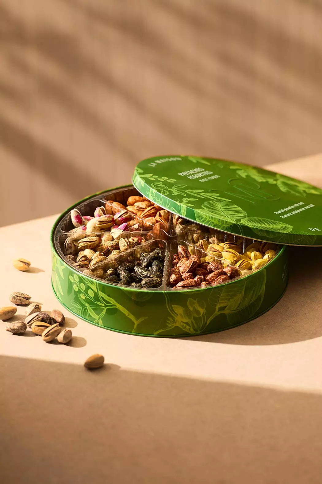 Son design botanique et lumineux célèbre l’élégance naturelle de la pistache. Sur fond doré, chaque détail illustre le savoir-faire artisanal et la sensibilité esthétique de La Maison de la Pistache. Une création à la fois précieuse et poétique, où l’art du goût rencontre celui de la beauté.